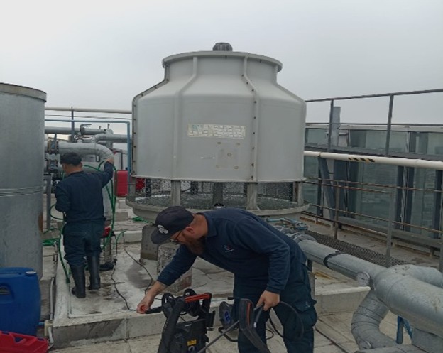 Instalación de VDF en sala de bombasInstalación de motor VEX TNRevisión bomba circuito 24-7 TSPruebas de voceo y palancas TN y TSProgramación y puesta en marcha VDFNormalización de lazos en central TNNormalización iluminación plaza centralMantención torres de enfriamientoMantención interior oficinas sistemas de detecciónLimpieza de estacionamientos